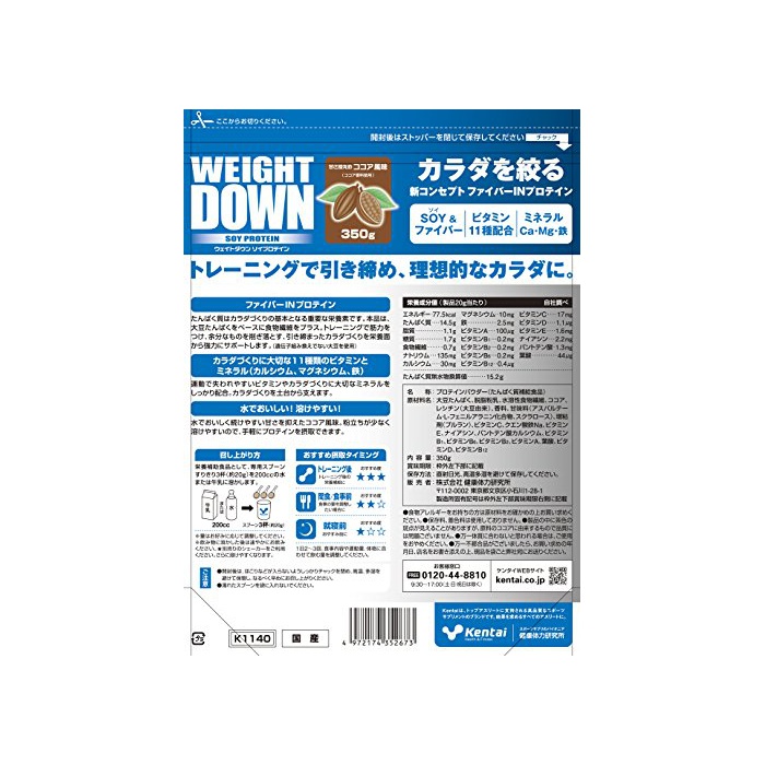 원본상품명: Kentai ウェイトダウン ソイプロテイン ココア風味 350g