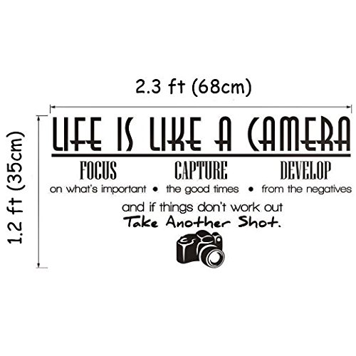 Amaonm® Life Is Like a Camera Focus Capture Develop and Take Another Shot Vinyl Wall Decals Wall Sticker Quotes Sayings Words Art Decor Lettering Vinyl Wall Art Decor for Bedroom Living Room