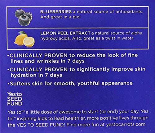 ReleaseDate : 2014-06-16 Studio : Yes to Blueberries Publisher : Yes to Blueberries Binding : Health and Beauty Product Description A clinically proven intense night cream to help reduce fine lines and wrinkles. The same amazing, moisturizing formula (that helps fight the signs of aging!) now comes in a jar! Formulated with Wild Acacia to help reduce wrinkle depth and appearance, and a blend of natural fruit alpha hydroxy acids to add moisture and 'plump' skin. Let us do the wrinkle-fighting, time-erasing work, while you sleep. Reduce the look of fine lines and wrinkles in 7 days!. Significantly improve skin hydration in 7 days. 0