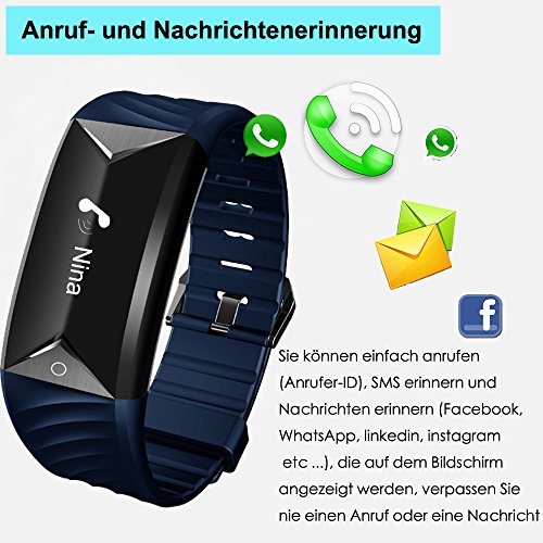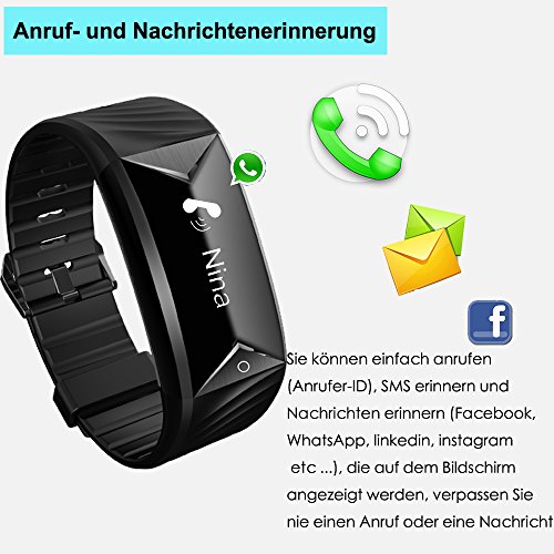 【Anrufe / SMS / Whatsapp Vibration】Einfach das Armband uber Bluetooth an Ihr Smartphone anschliessen und in die App einstellen. Es wird vibrieren, um Sie zu benachrichtigen, wenn Ihr Telefon einen Telefonanruf, SMS-Text und SNS-Nachrichten einschliesslich Facebook, Wechat Twitter, WhatsApp, Linkedin, Instagram, Messenger, etc. erhalten hatt.