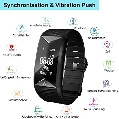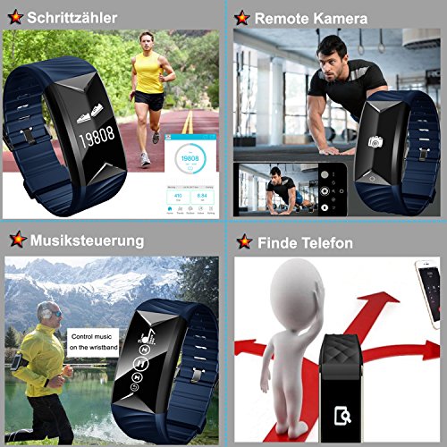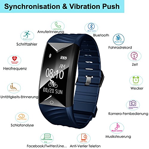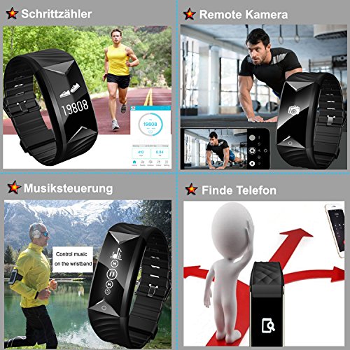 【Hauptfunktion】 Pulsmesser, Schrittzahler, Kalorienzahler, Schlafanalyse, Musik-Fernbedienung, Remote Kamera, Wecker Vibration, Bewegungserinnerung, Anti-Verlier Telefon, Finde Telefon.