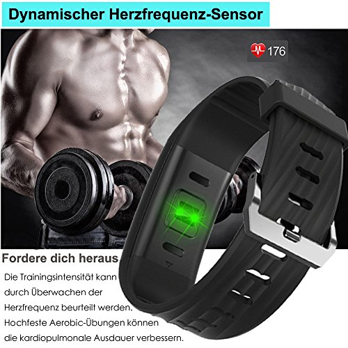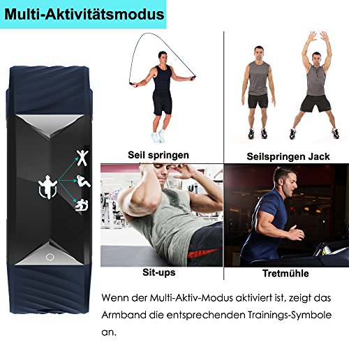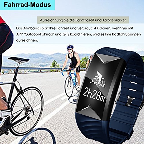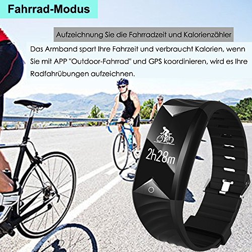 【Fahrrad Modus und Multisport Tracking】Aktivieren Sie das verbundene GPS, um Ihre Routen zu mappen und Laufstande wie Tempo und Dauer auf dem Display anzuzeigen. Fitness fur Fitness-Studio: Springseil, Jumping Jack, Sit-up, Laufband. Wenn Sie Ihr Armband mit der App koppeln, verbessert sich Ihre Trainingseffizienz.