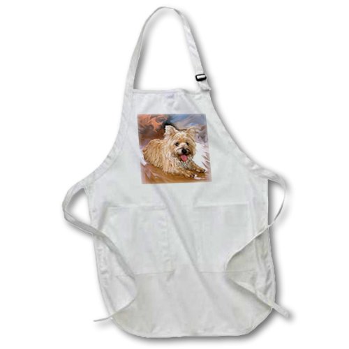3dRose apr_4466_1 Cairn Terrier Full Length Apron with Pockets, 22 by 30-Inch, White
