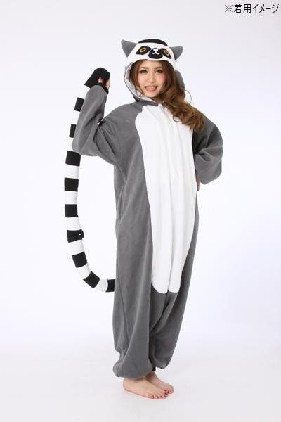 | しっぽがとっても可愛いワオキツネザルの着ぐるみです。フリース素材なので、暖かく着心地も良いです。お部屋着にもオススメ☆ |
