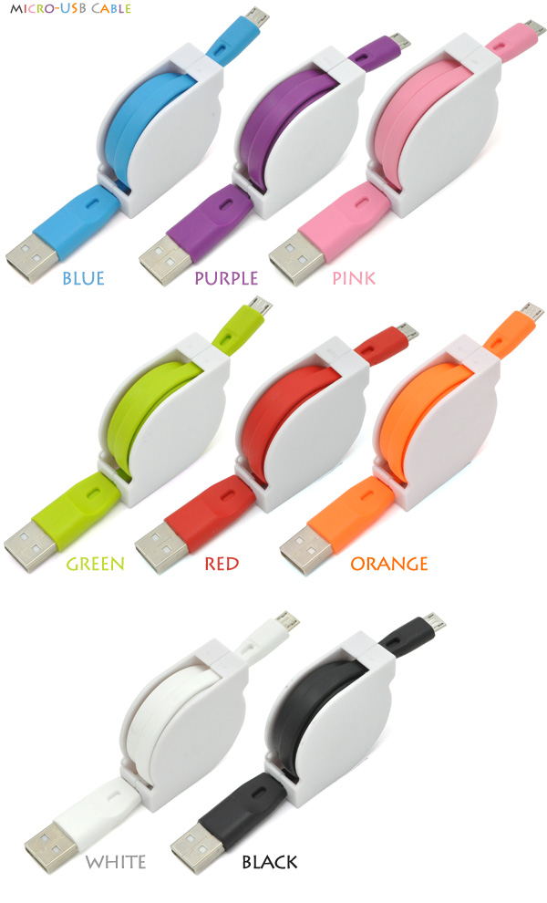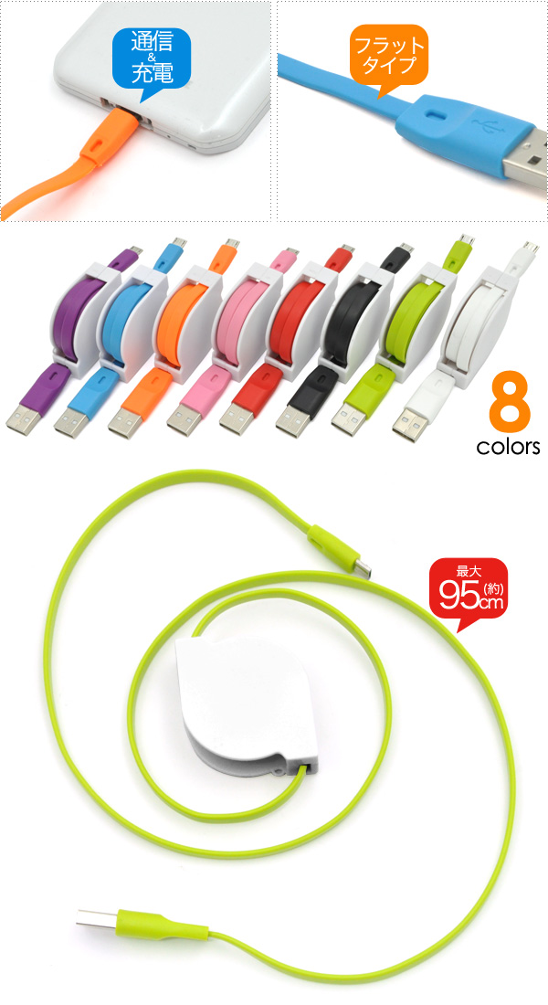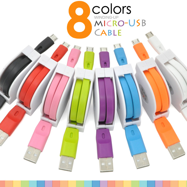 | カラフルな8色展開! microUSB巻き取り式ケーブル | | |
