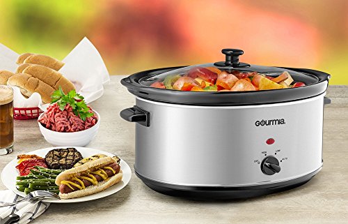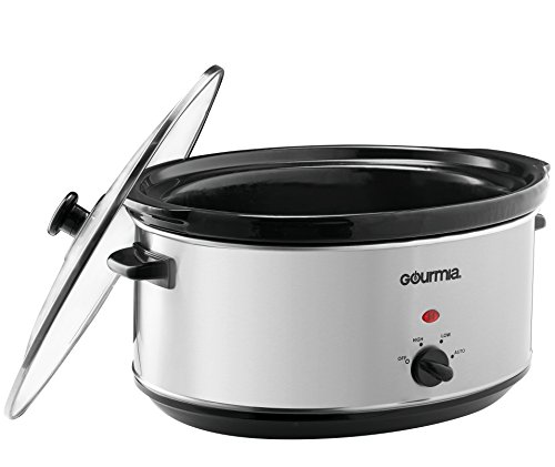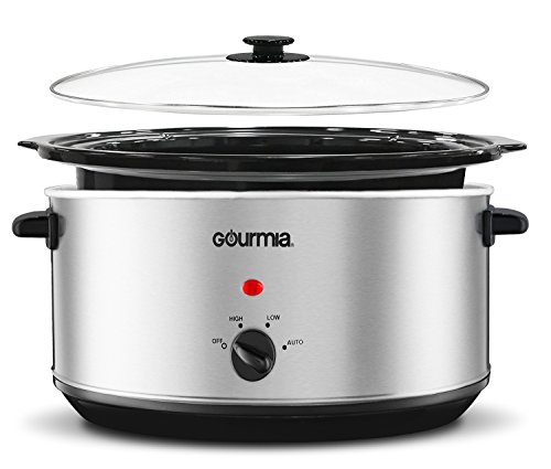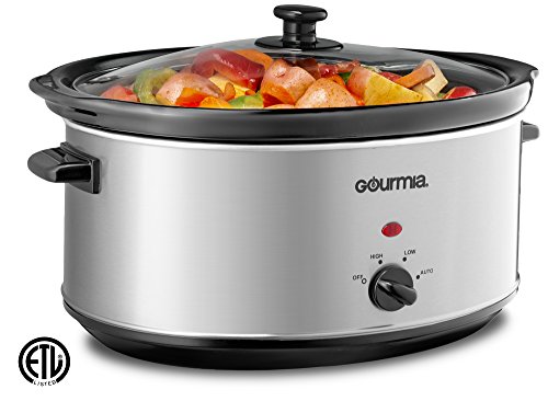 Gourmia PC710 7 Quart Oval Stainless Steel Slow Cooker with Auto Mode and Cool Touch Handles