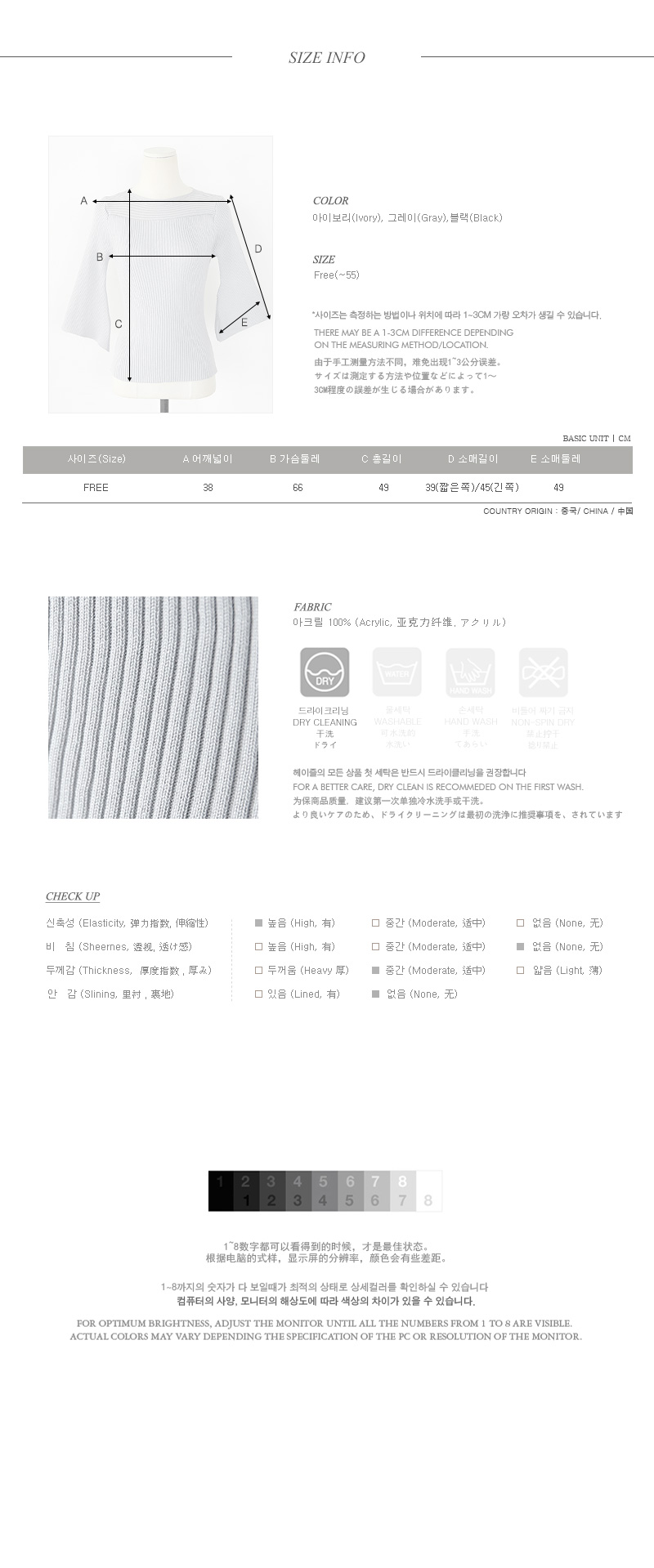 여성스러움 물씬~ 느껴지는 골지탑! 여릿한 실루엣이 돋보이는 아이템이에요^^ 쫀쫀한 골지 소재감으로 간절기시즌부터 가을시즌까지 쭉~ 입기좋은 아이템이구요, 신축성이 좋아 착용감까지 정말 편안해요! 보트넥 디자인으로 세련된 페이스라인과 여성스러운 느낌을 연출해 주구요, 7부 길이의 언발란스한 슬리브 디자인은 트랜디함까지 더해주는 탑이에요^^ 베이직한 컬러감으로 준비되어 과하지않게 예쁜룩을 완성해 준답니다~