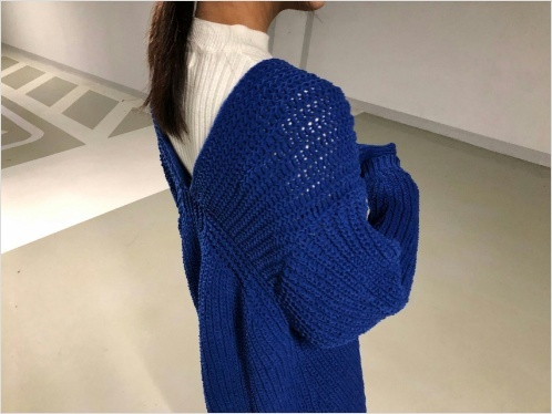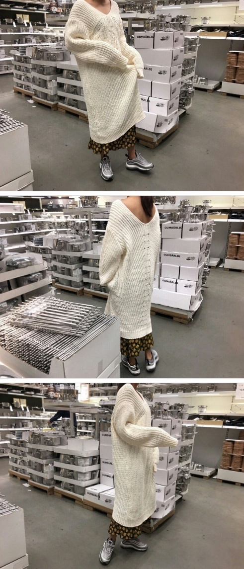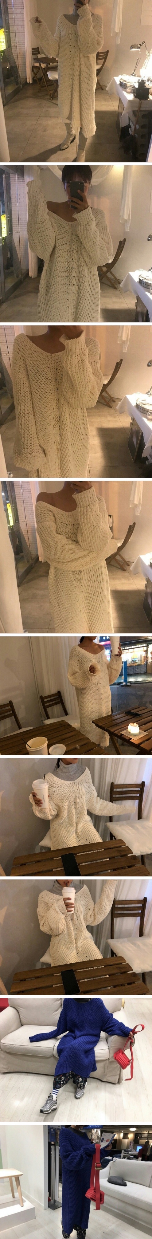 Women`s V-neck Long Knit Sweater Blue Beige Ivory