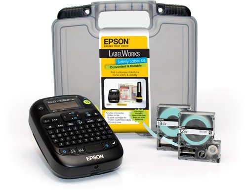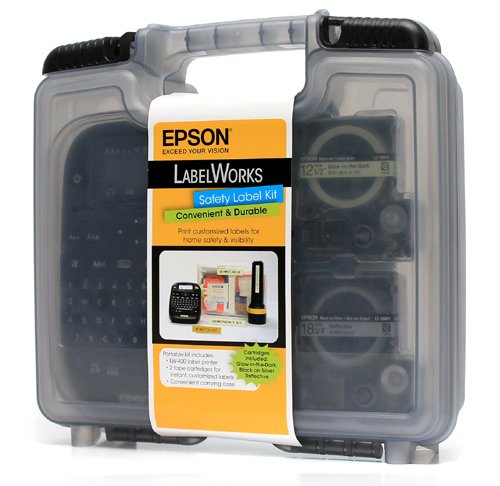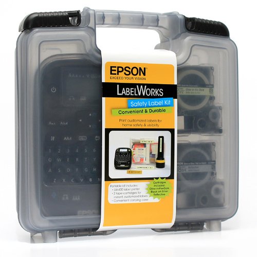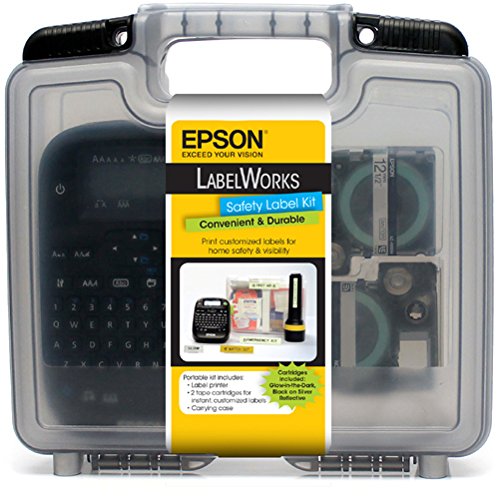Kit includes label printer, 12 mm (~½") Glow-in-the-dark cartridge, 18 mm (~¾") Black on Silver (Reflective) cartridge and a convenient storage/carrying case
