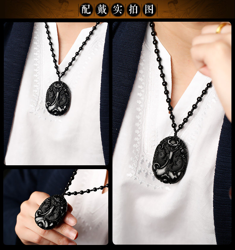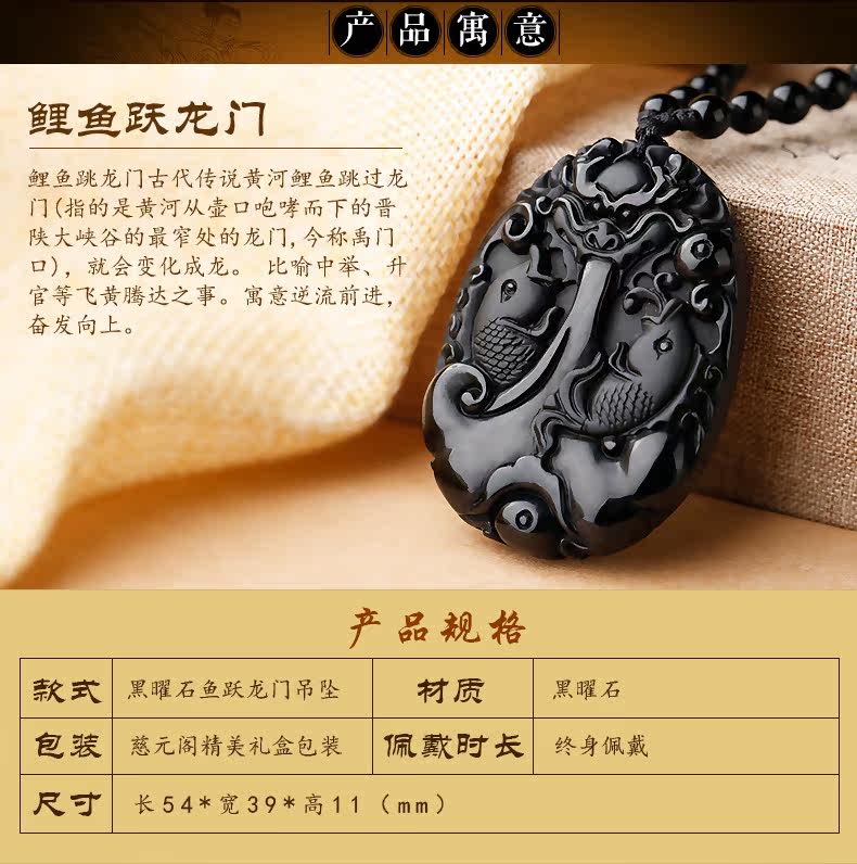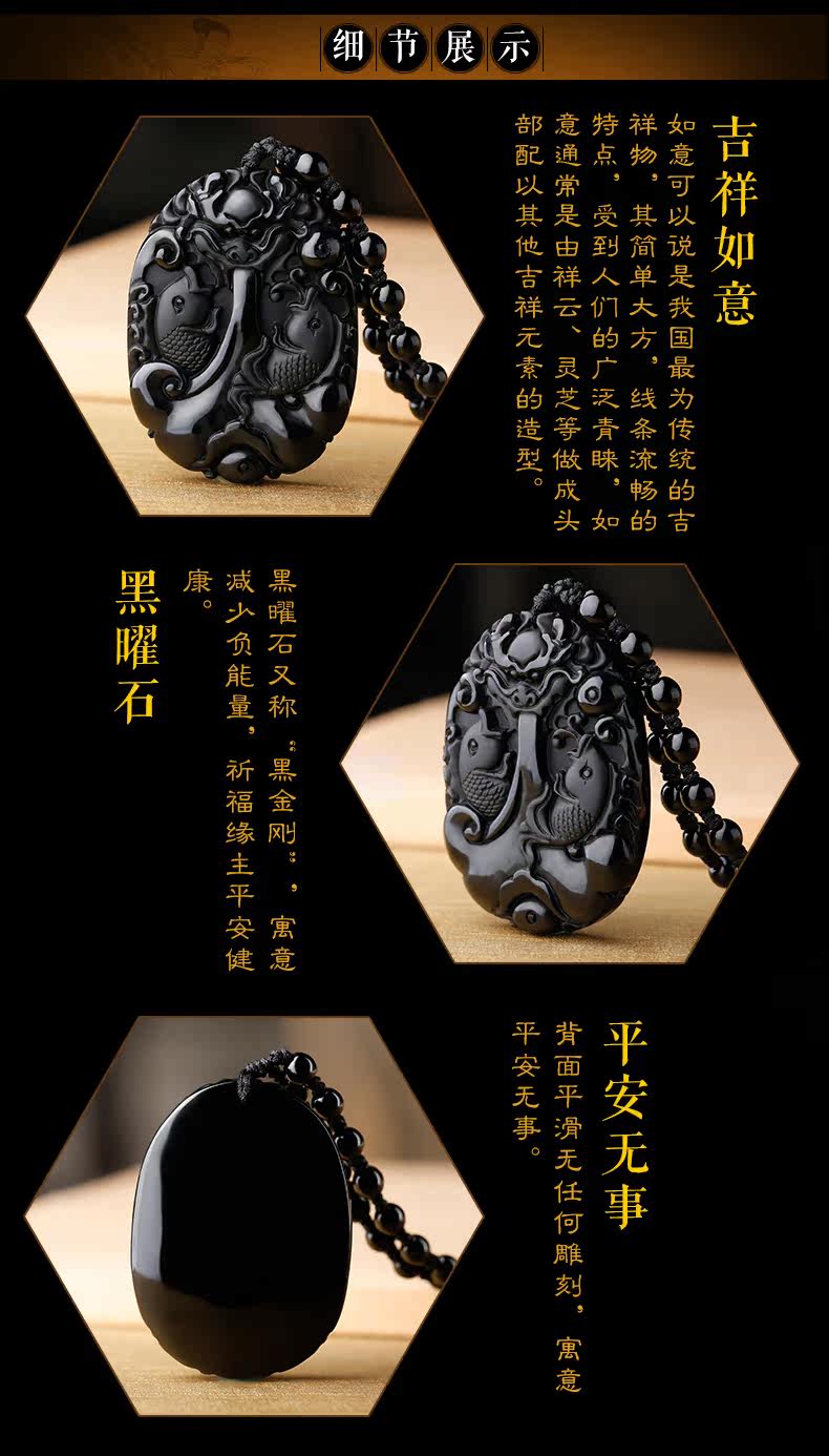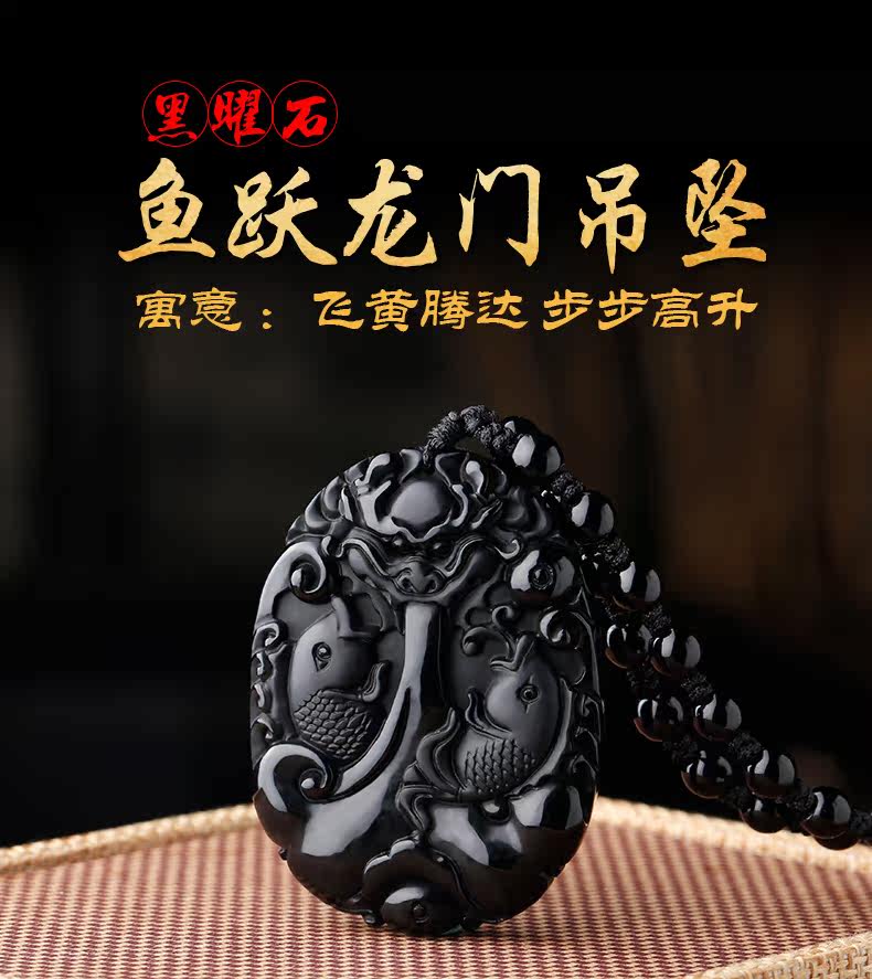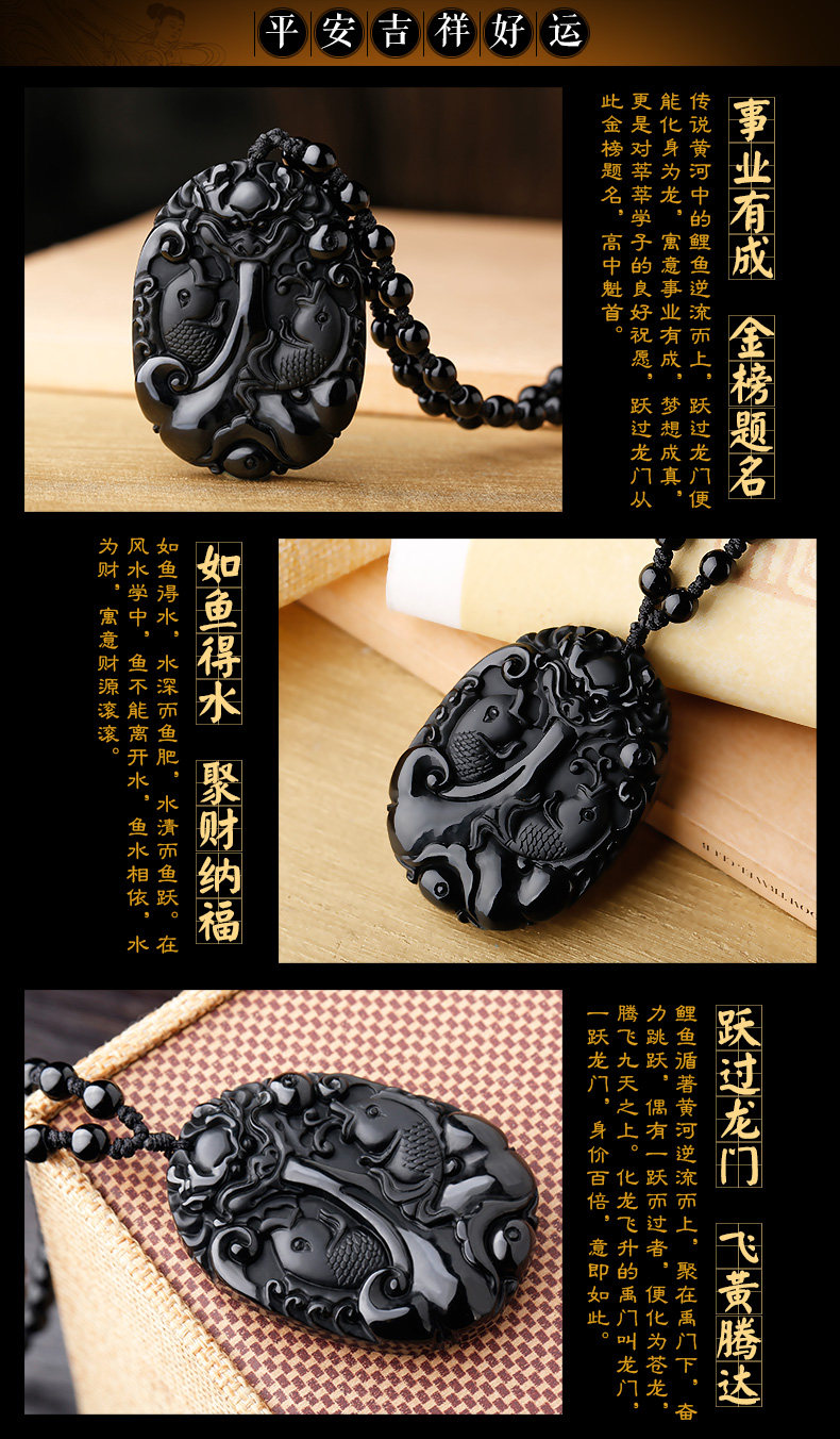 开光黑曜石双鱼跃龙门吊坠男女款水晶项坠事业学业旺挂件