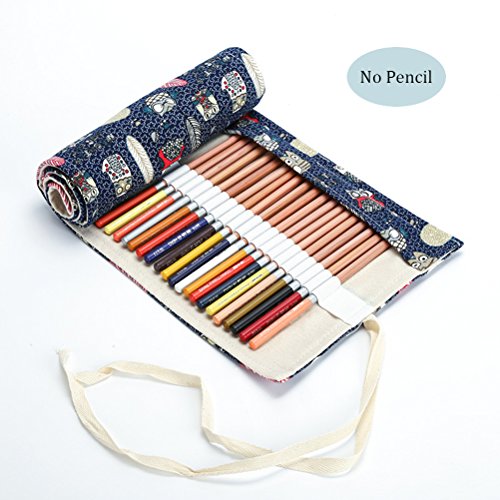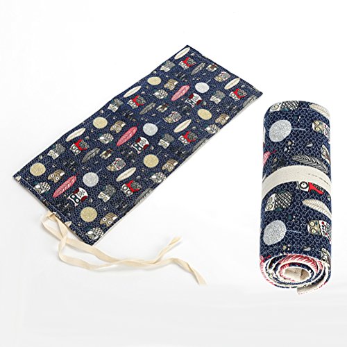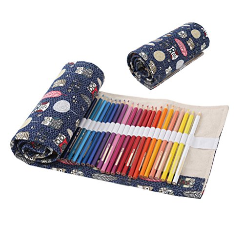 Colored Pencils Portable Pencil Organizer Holder Roll-Up Pencil Wrap 72 Slots Owl Pattern (72-Holes)