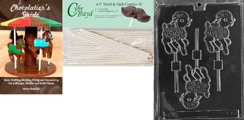 Cybrtrayd 45St50Bk-E157 'Lamb Lolly' Easter Chocolate Candy Mold with 50 4.5-Inch Lollipop Sticks and Chocolatier's Guide