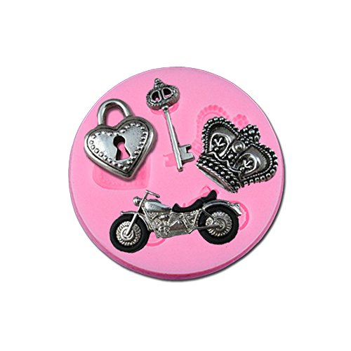 Anyana Motorcycle Lock Key Crown Silicone Fondant Mold Cake Decorating Pastry Gum Pastry Tool Kitchen Tool Sugar Paste Baking Mould Cookie Pastry