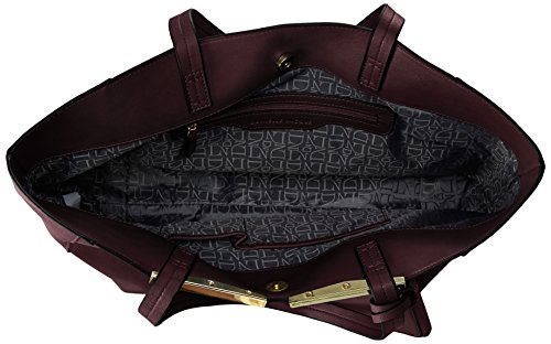 Double handled east/west style tote bag with removable triangle zip pouch and multiple interior pockets.