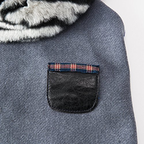 取り外し可能なアニマルプリントファーのネックフォーマ―がついた着心地のよい100%コットンのトップスです! -ポケットのチェック柄がポイント!