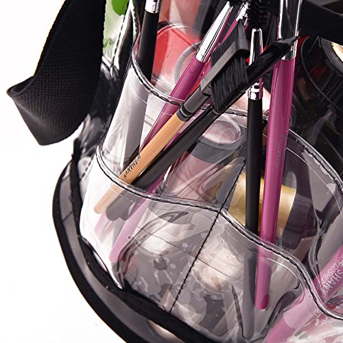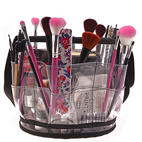 Feature : Durable 100% recycled dry Vinyl with solid construction for durability and long lasting use / Used as Travel cosmetics bag, Makeup organizer, Makeup artists travel bag , Makeup bag / Shoulder strap for easy carriage, 100% washable materials, Exterior pockets and zips / It fits all large cosmetics accessories like Blow dryer, Flat Iron, hair dryer , Makeup brushes / Clear see through materials makes it easy to find and organize your cosmetics accessories
