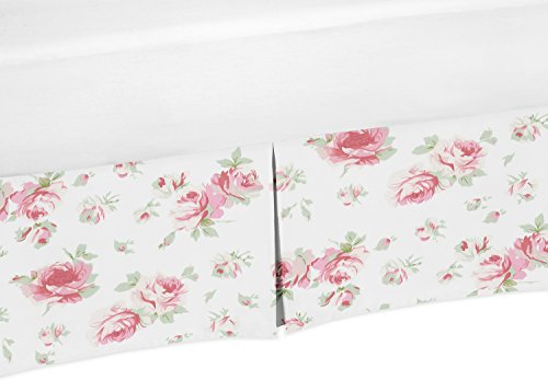 -. Title : Pink and Sage Green Floral Crib Bed Skirt Dust Ruffle for Girls Riley's Roses Collection Baby Bedding Sets