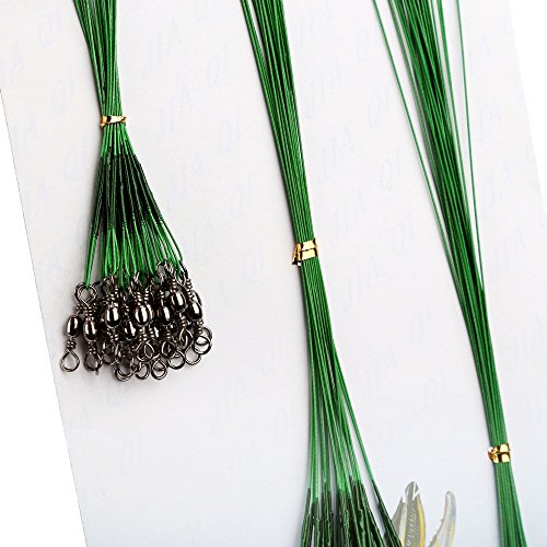 -. Feature : - 72pcs wire leaders in 3 different size 16cm / 6.3 inches, 23cm / 9.1 inches, 31cm / 12.2 inches. / - Barrel swivel on the bottom and snap swivel on the top, much easier to use. / - Made by nylon coated stainless steel wires, durable and anti-rust. / - Perfect for using in salt water or fresh water.