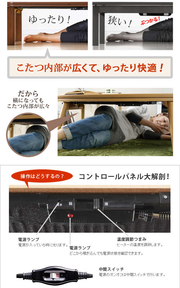 ●サイズ:こたつ-幅110x奥行80x高さ40cm・約16.5kg、布団-205x160cm