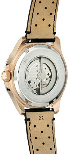 New for the holidays, Wakefields precise performance lies within the intricate skeleton movement and durable case design. A striking rose gold-tone case houses a jet-black dial with bright red accents, all offset by a perforated black leather strap.Feature