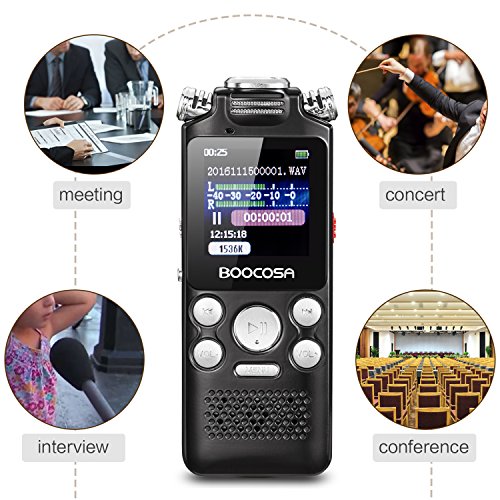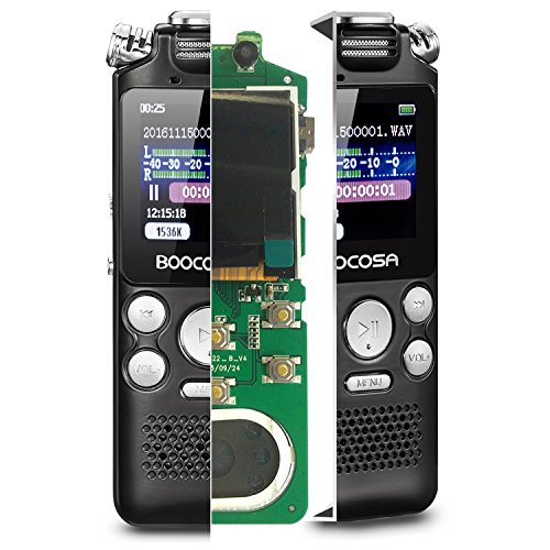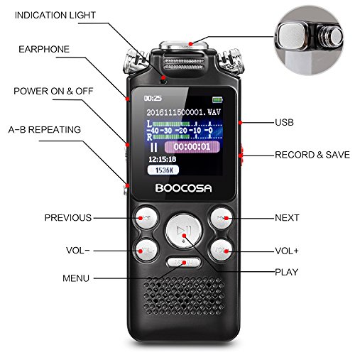 - LARGE CAPACITY STORAGE: With 8GB of flash memory inside, you can record continuously up to 30 hours and store nearly 560 hours of recording data. BOOCOSA provides ONE year warranty and a THREE month money back guarantee, coupled with professional customer service support.