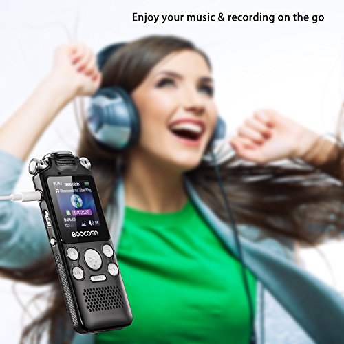 BOOCOSA 8GB Color Digital Voice Recorder 1536Kbps Noise Reduction Audio Recorder Stereo Clear Sound Recorder with MP3 Player / One Switch for Recording & Save