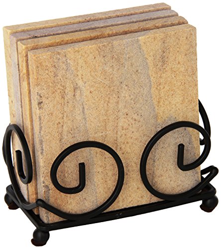 Thirstystone Absorbent Drink Coasters with Holder, Rainbow Stone