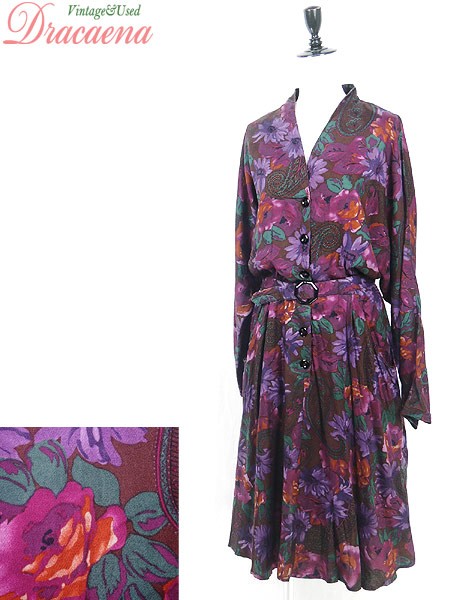 Ladies ブランド カラー紫 メール便不可 コンディション★★★ 素材レーヨン 表記サイズ12 実寸サイズ 着丈 118 cm 袖丈 67 cm ラグラン袖の為、襟元から袖先までの計測 ウエスト 70cm 〜 82cm (27.5インチ〜32インチ) ※ウエスト・ヒップ以外は平置き採寸【code】#d