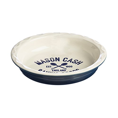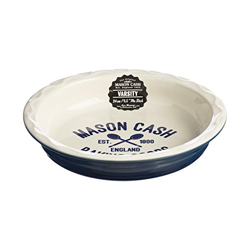 Mason Cash Varsity Ceramic Pie Dish, 9-1/2-Inches, Navy Blue, Cream
