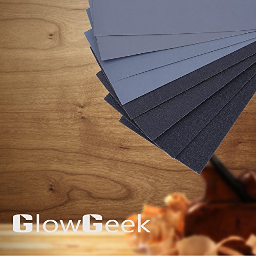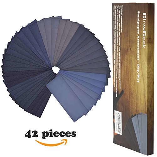 GlowGeek 120 to 3000 Grit Sandpaper Assortment, Dry/Wet, 9 x 3.6 Inch, 42 Pieces,Sand Paper for Automotive Sanding, Wood Furniture Finishing, Wood Turing Finishing