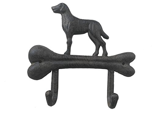Comfy Hour Cast Iron Dog On Bone Double Coat Hooks Key Hooks Clothes Rack Wall Hanger - Metal, Heavy Duty, Rustic, Vintage, Recycled, Decorative Gift Idea