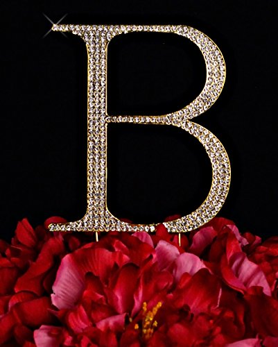 Unik Occasions Collection Crystal Rhinestone Letter-B Wedding Cake Topper, Small, Gold