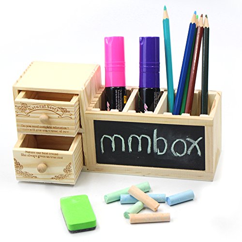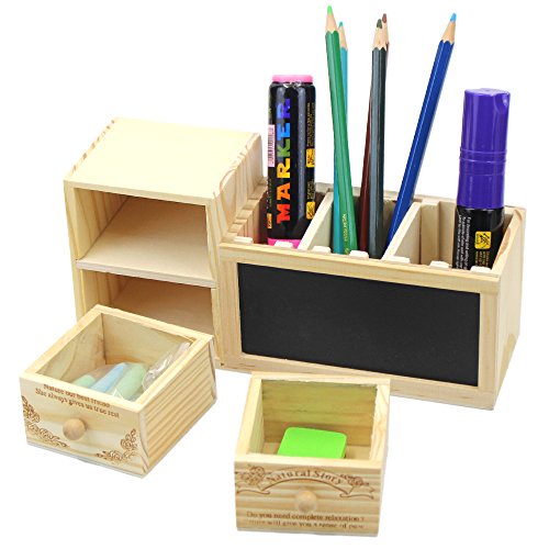 KisSealed Wooden Pen Holder for School Desk Organizer with Chalk and Message Boards