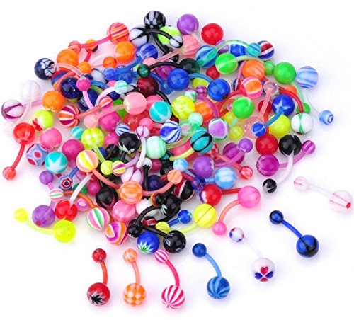 CrazyPiercing Assorted Lot of 100PCS Banana Piercing 14G Belly Button Rings Piercing Jewelry