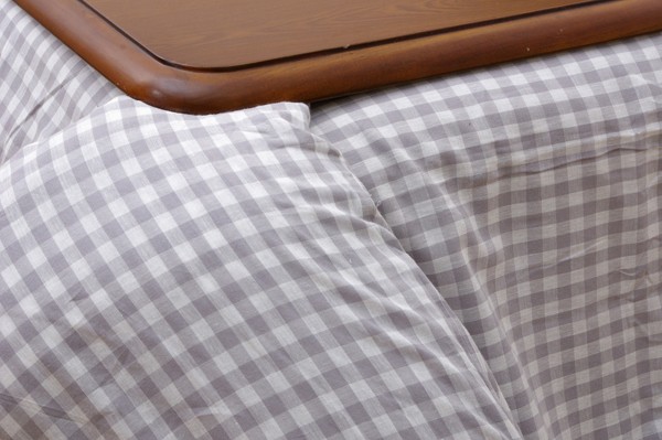 【商品名】コタツ掛け布団カバー 『ギンガム 長コタツカバーLS』 グレー 195×245cm 綿100%