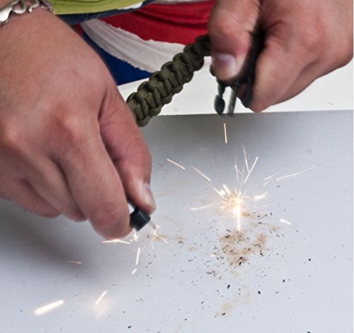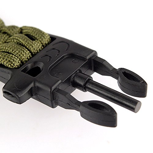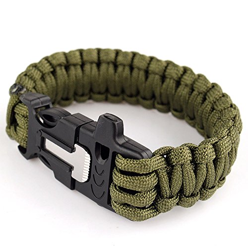 #1 Amazing Survival Bracelet with Paracord, Whistle, Flint Fire Starter and Scraper (Green)