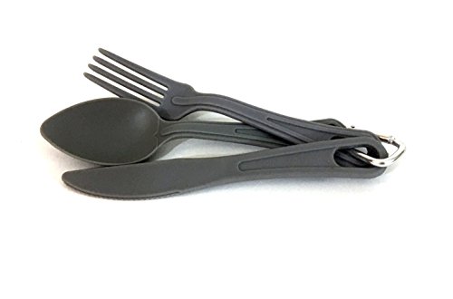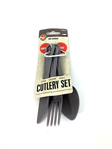 -. Title : Portable Camping Cutlery Set - Light Weight and Sturdy - Compact and Easy To Store - 3 Piece Set Includes a Fork, Knife, and Spoon - Comes With Metal Carabiner