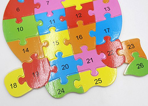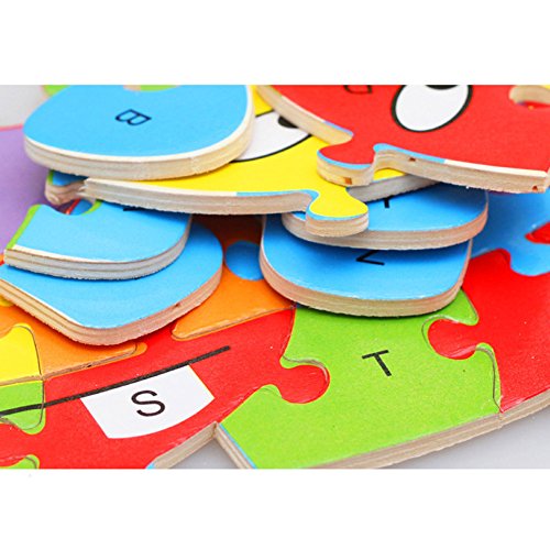 Each piece of the puzzle has a letter, after finishing, it was a complete animal shape, makes baby interested in learning shape and animal, help baby' hand eye coordination and developing intelligence