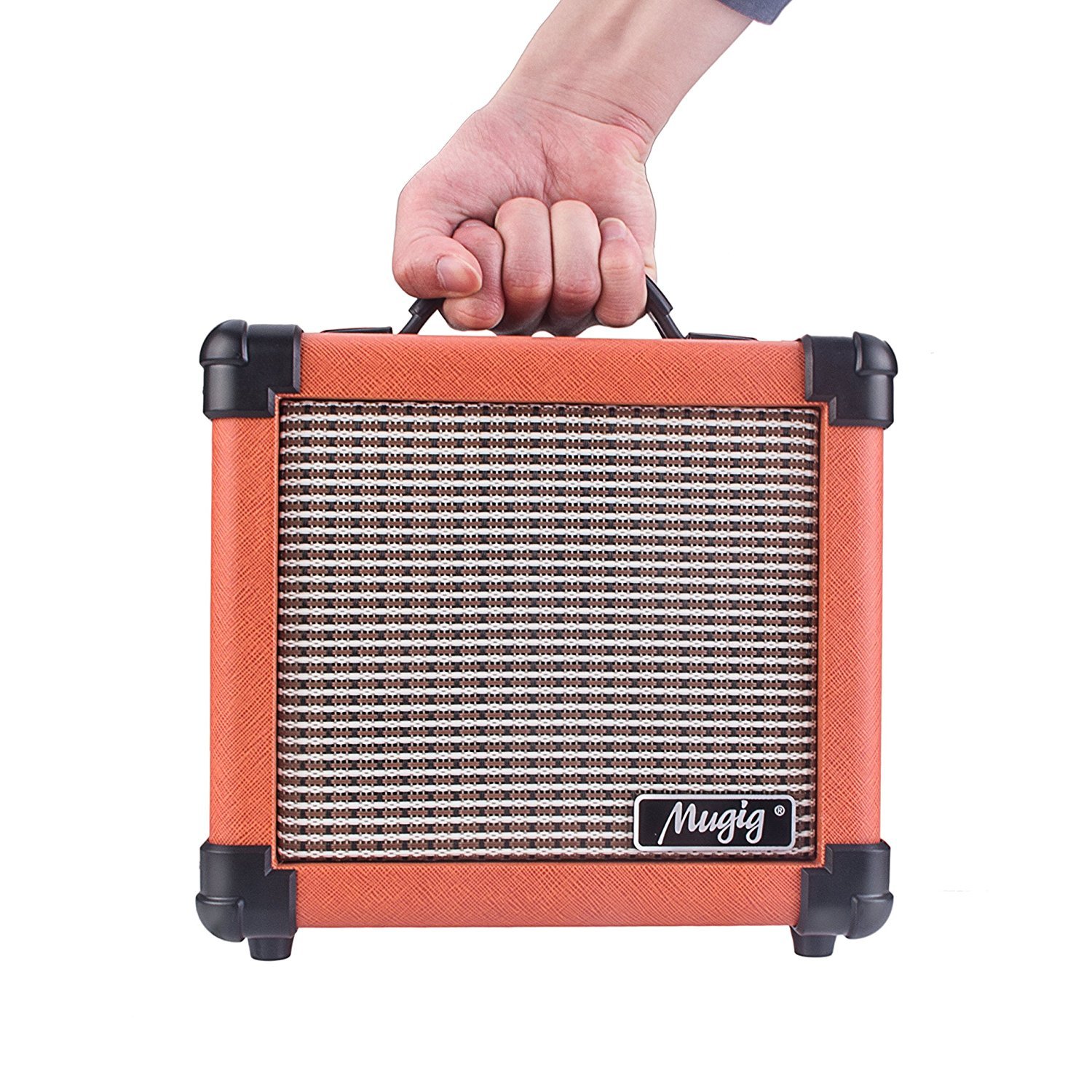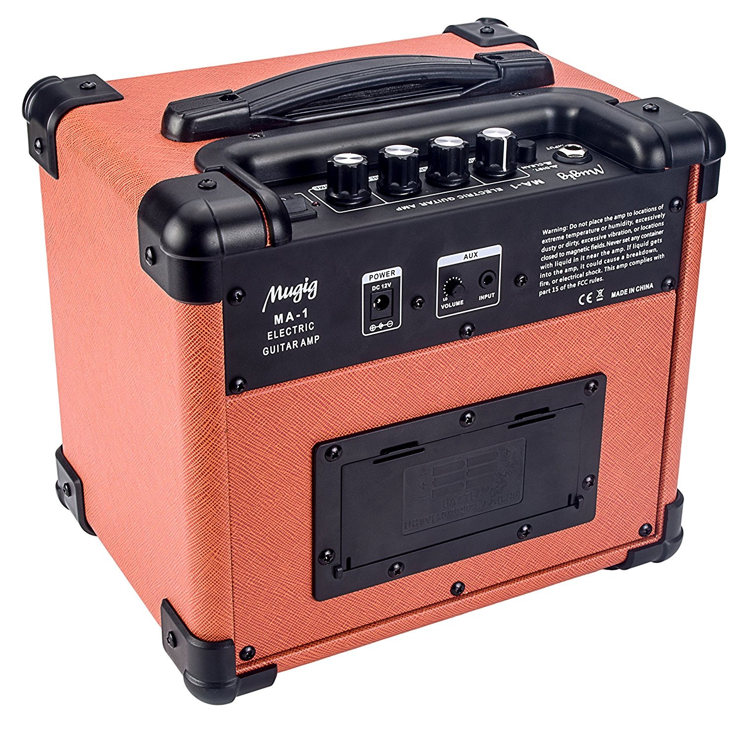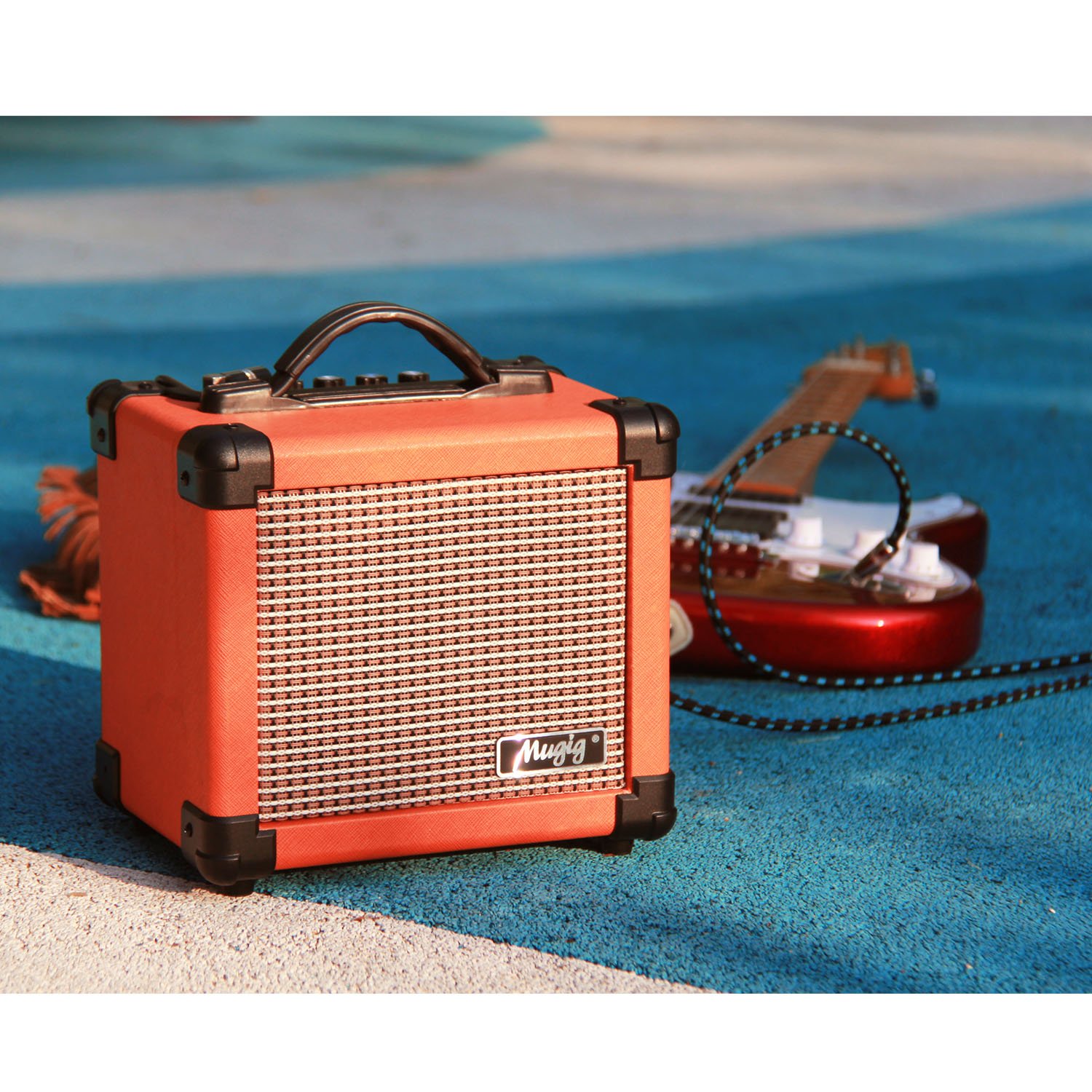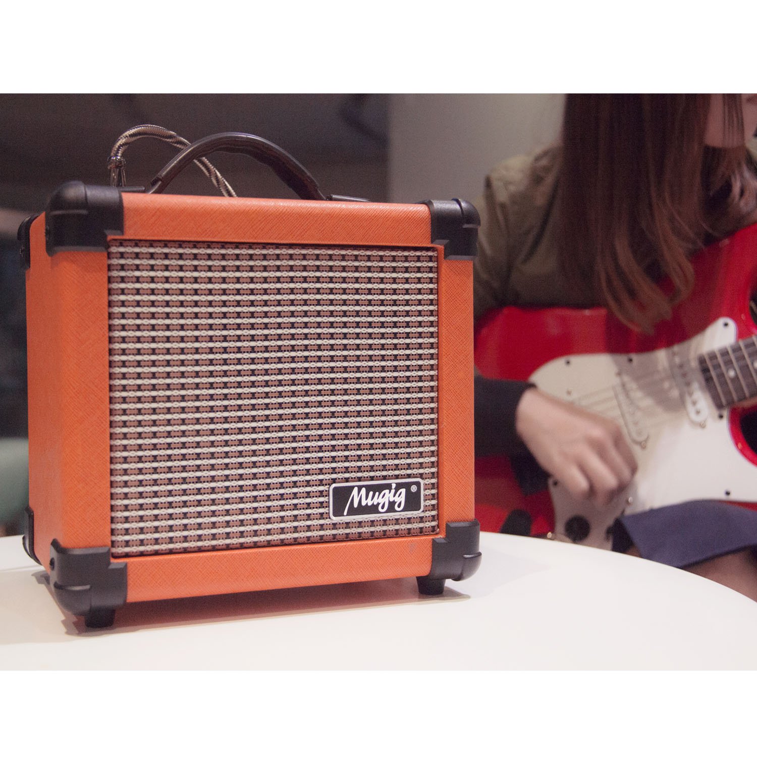 This guitar amp can be supplied with 6 AA batteries and an AC adapter, with a handle at the top so you can use it for outdoor parties and street performances.