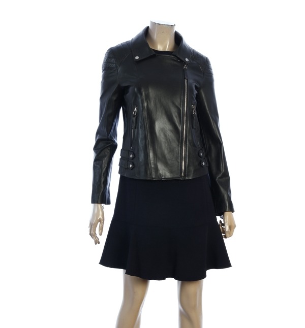 mesense, 언발런스한 여밈으로 세련스러운 스타일 감각을 연출하는 가죽 자켓입니다
