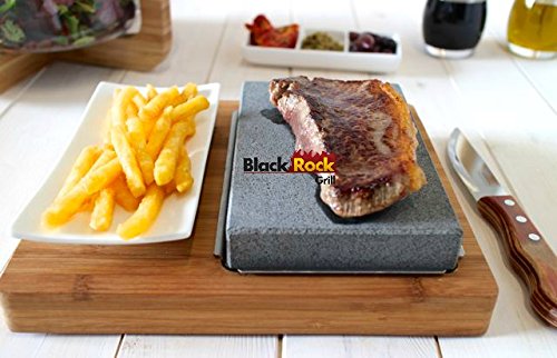 - Feature : The Lava Stone Steak Set creates mouth-watering food, for use at home, dinner parties, or a gift. They can be used both indoors and outdoors. / Create mouth-watering food, for use at home, dinner parties or as a gift. / Simply preheat the rock, add your favourite sauces and sizzle away with the hot searing process trapping all the flavours and moisture inside your meat or fish. It's a great healthy way to eat with no oils or fats used in the cooking process. A wide variety of meat, fish and vegetables can be cooked on the rock. / Lava Stone, Bamboo Board, Stainless Steel Underplate, Rectangle Plate. All of the component parts that make up the Lava stone Steak Set have been specially sourced for their suitability. The wooden board must be wiped down while the rock can be washed in water but do not soak the stone. Includes: x1 Lava Stone (20cm x 13cm x 3cm) x1 Porcelain Rectangle Plate (20cm x 10cm x 2cm) x1 Stainless Steel Underplate (22cm x 14.5cm x 1cm) x1 Wooden Board (27cm x 24cm x 3cm) Weight 4kg Each / The Lava Stone Steak Set can be used sizzling hot or freezing cold. To heat your rock either place it in the oven for 60minutes or place on your gas or electric hob for 25-30minutes. Alternatively you can purchase the ROXY12 rock oven (which you can purchase on our website: www.blackrockgrill.com/shop) to heat your rocks up to 440c as they do commercially, thus extending the cook time even further. Using heat proof gloves or our stainless steel shovel /pick (which you can purchase on our website) you can move the rocks safely onto the bamboo board to sit onto of the stainless steel underplate. To Chill your rock place in the freezer for at least 4hrs, serving a variety of desserts!