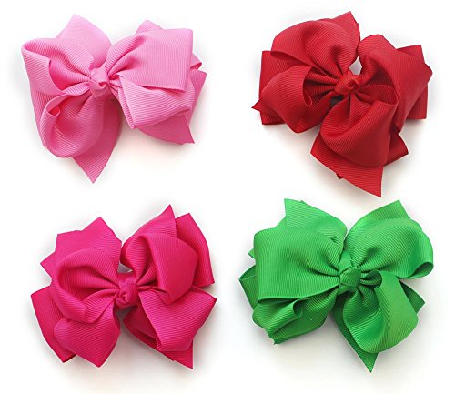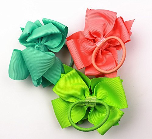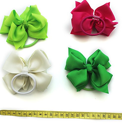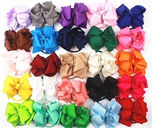 25pcs 4" Boutique Hair Bows Girls Kids Children Rubber Elastic Band Grosgrain Ribbon Headbands 25color