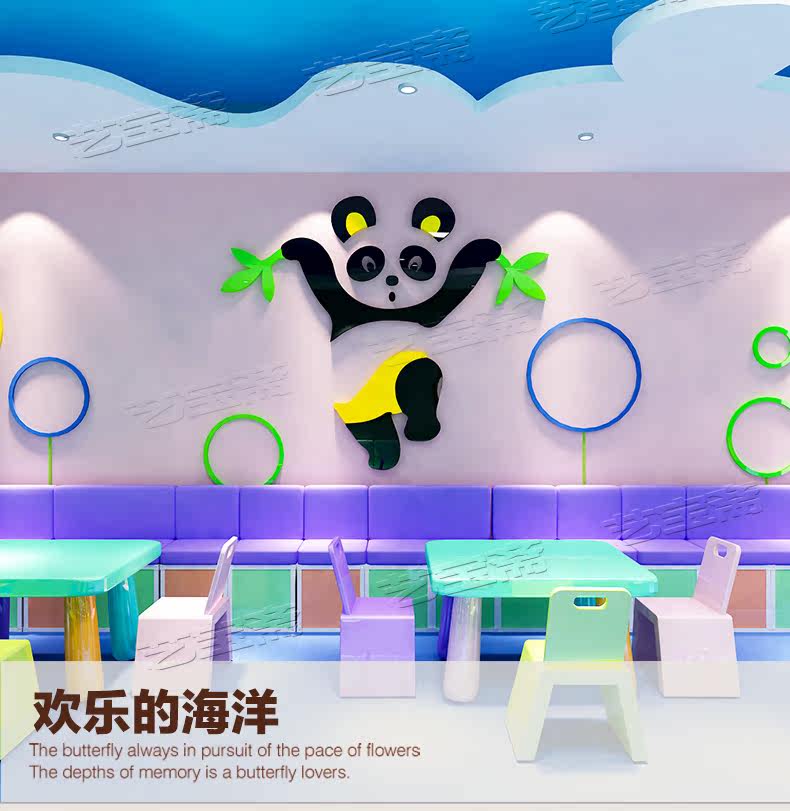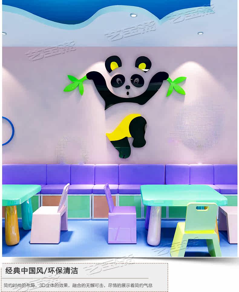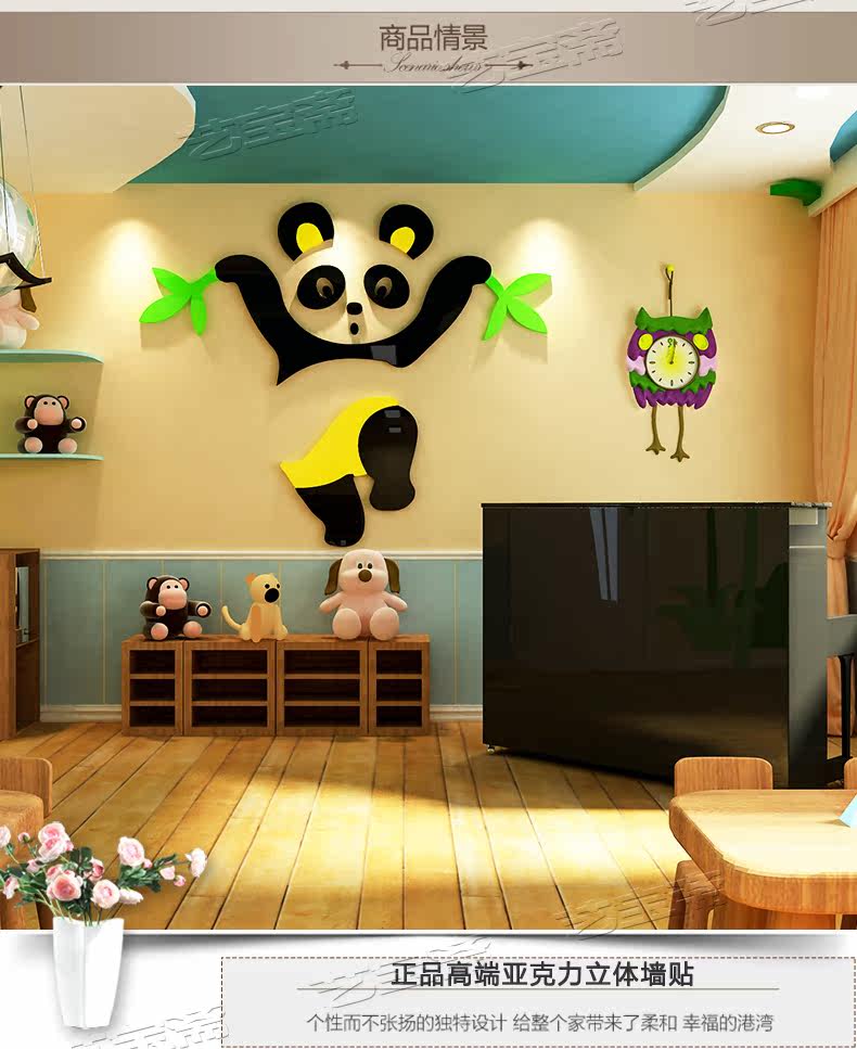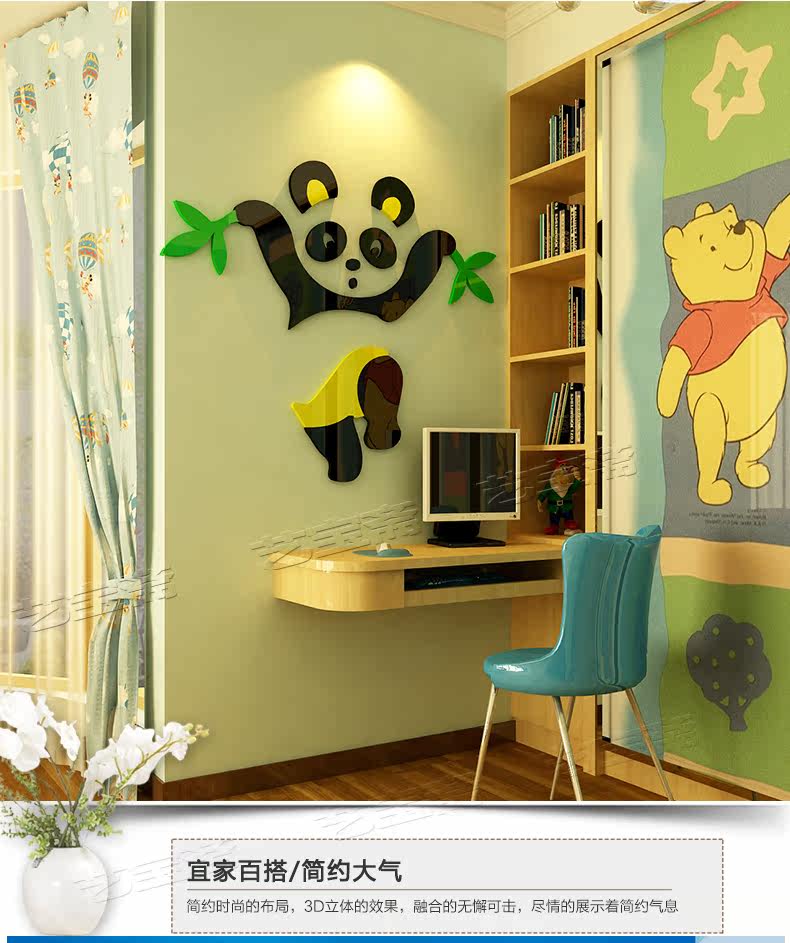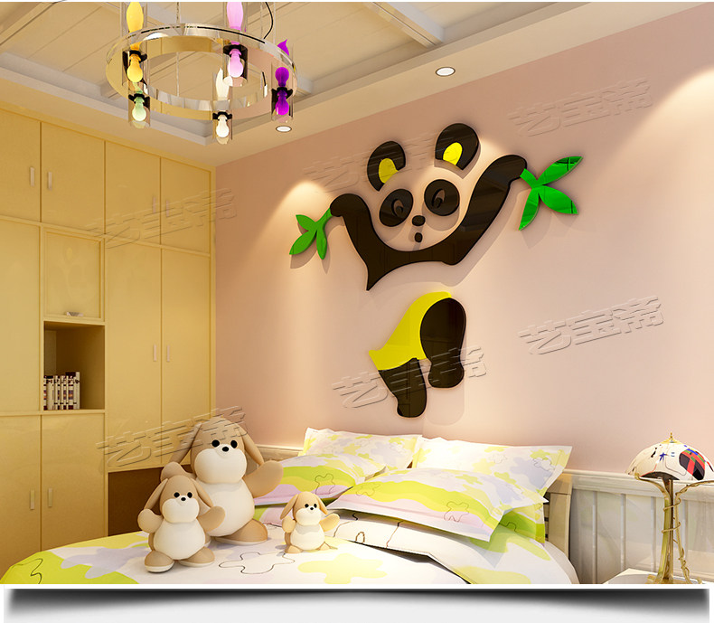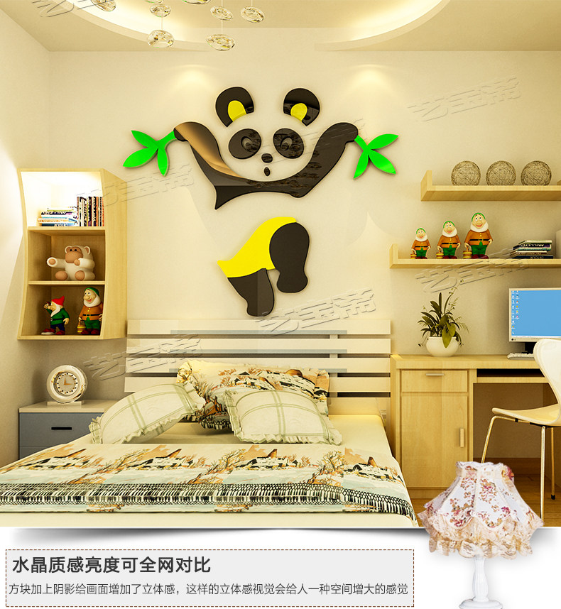 熊猫儿童房宝宝幼儿园水晶亚克力3d立体墙贴画纸卡通卧室墙壁装饰