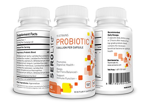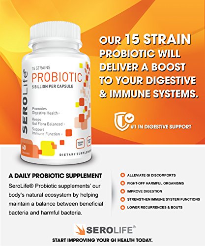 SEROLIFE® probiotic is loaded with 15 strains and 5 billion CFUs per capsule. Very potent probiotic for women and men. Ideal probiotic to help aide your digestive system, soothe irritable bowel syndrome, intestinal health, vaginal health, and immune system.