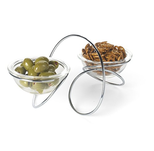The glass bowls are dishwasher safe, but the chromed wire is not.