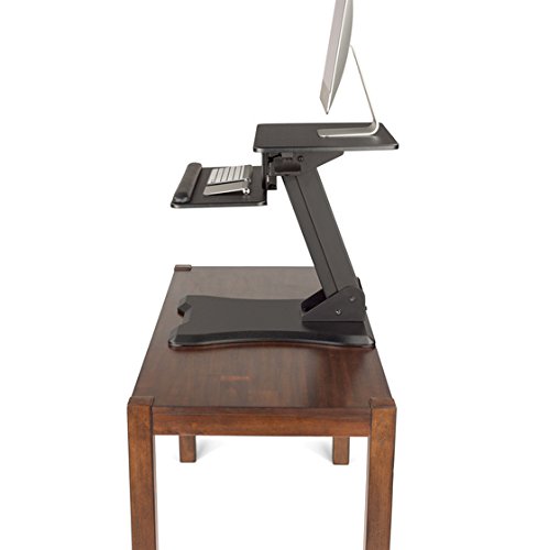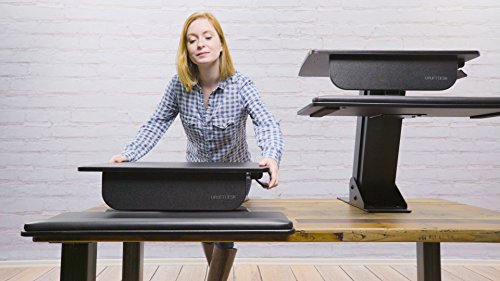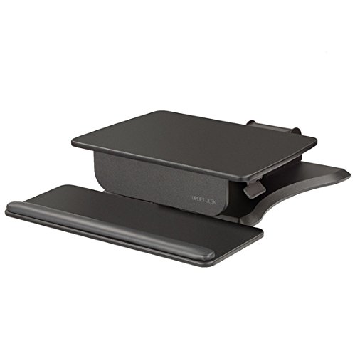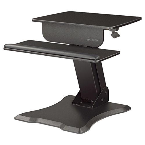 -. Brand : UPLIFT Desk -. Color : Black -. Feature : Converts any surface into a height adjustable workstation - 16.7" height range / Pneumatic adjustment does not require an electric outlet / Counterbalances to support the weight of your equipment - up to 28.6 lbs / Spacious keyboard tray / Palm rest included -. IsAutographed : 0 -. Label : UPLIFT Desk -. Manufacturer : UPLIFT Desk -. Model : UDA100~riser~BLK -. NumberOfItems : 1 -. PackageQuantity : 1 -. ProductGroup : Furniture -. ProductTypeName : HOME_FURNITURE_AND_DECOR -. Publisher : UPLIFT Desk -. Studio : UPLIFT Desk -. Title : Riser Standing Desk Converter by UPLIFT Desk
