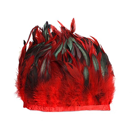 AWAYTR? Rooster Hackle Feather Fringe Trim 5-6" in Width Pack of 5 Yards (Hot red)