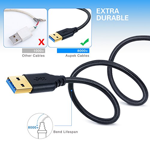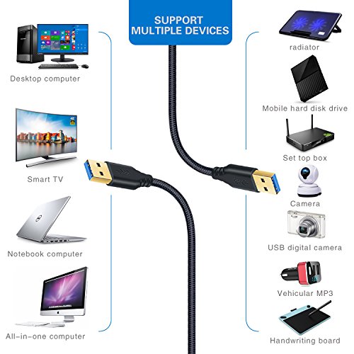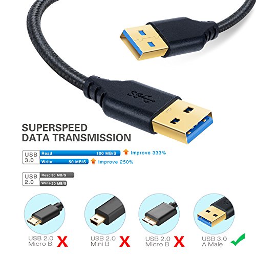 - Superspeed USB 3.0 Cable: usb 3.0 cord supports high speed data transfer rate up to 4.8Gbps. It ‘s almost 10X faster than USB 2.0. It is also backward compatible with USB 2.0.