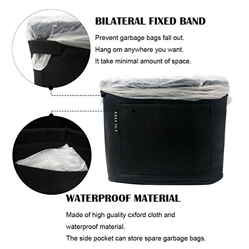 - [Perfect Waterproof Material]:Made of high quality oxford cloth with the waterproof feature,the side pocket can store spare garbage bags.Easy to clean,when the bag is dirty just need some water to wash or scrub.