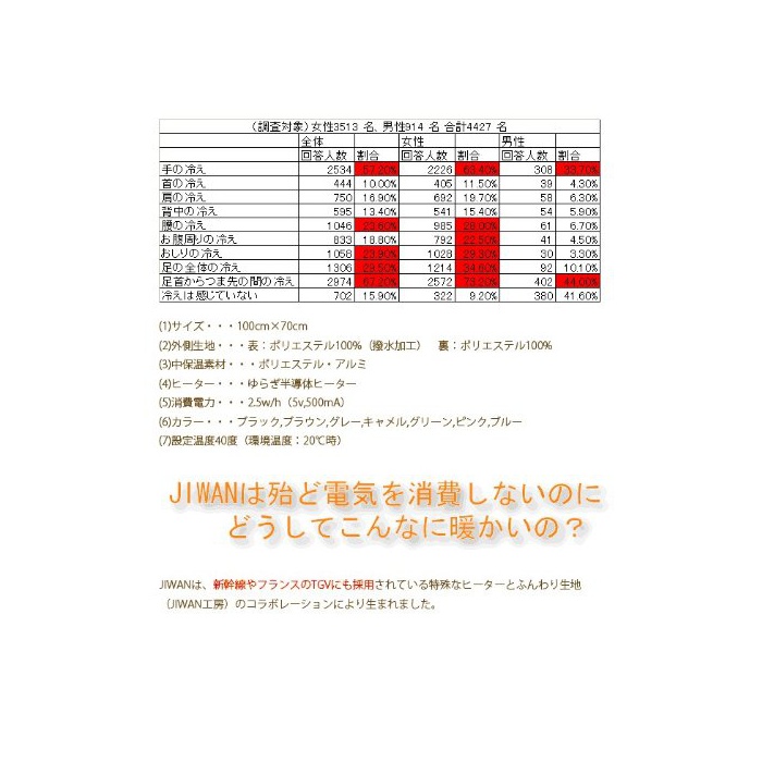 JIWAN 【토쿄도 권장 기술】전자파 제로 압도적인 따뜻함의 USB대응 전기 무릎 걸이 알루미늄혼 보온 소재 채용